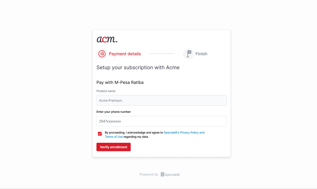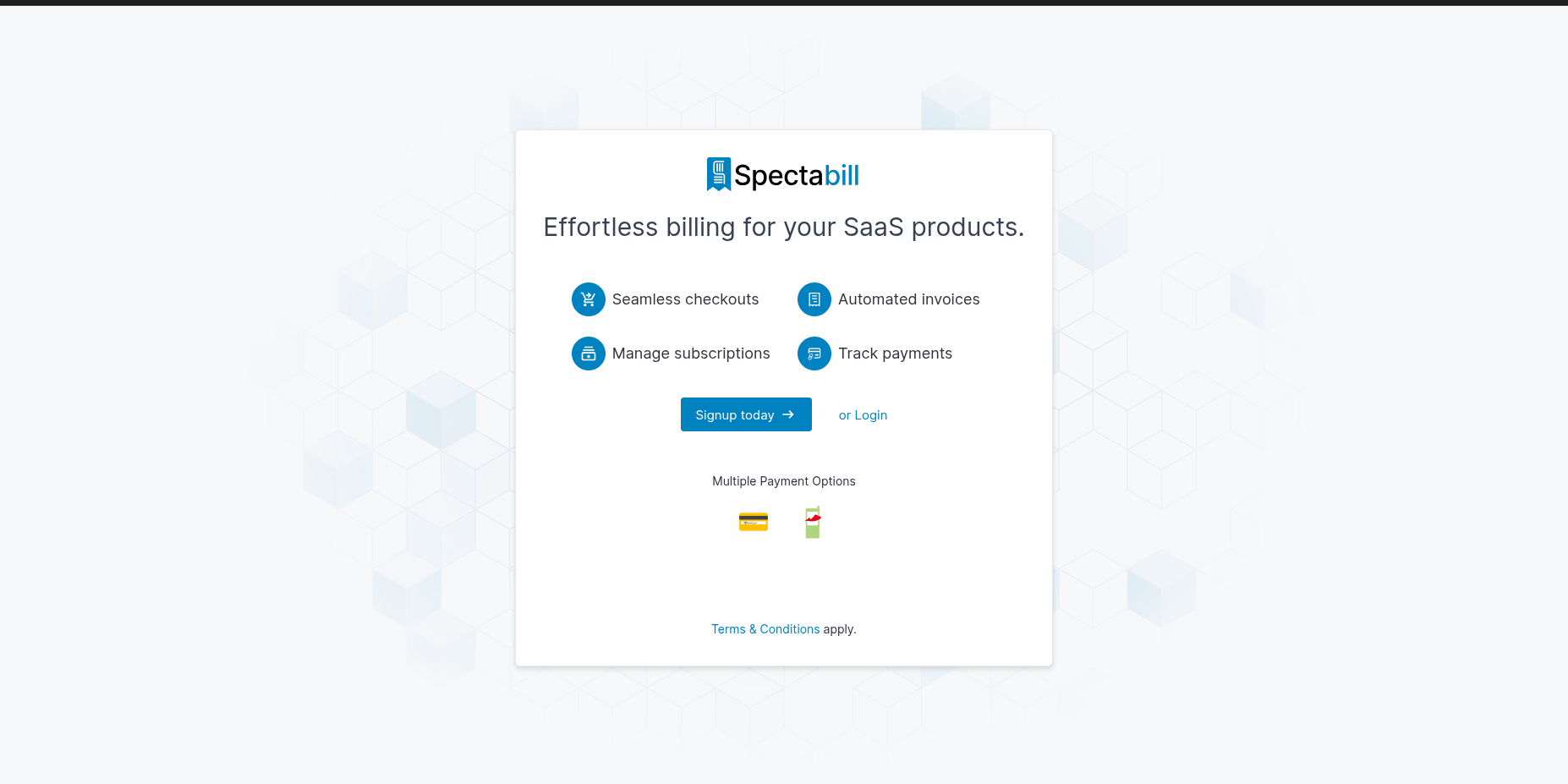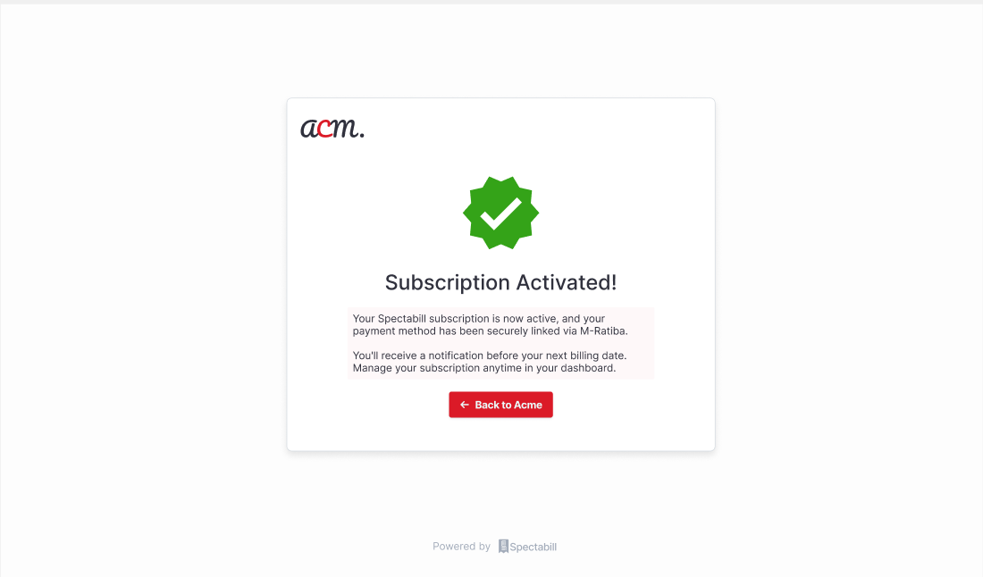 This streamlined flow reduces friction, making it easy for customers to subscribe and manage payments. Learn more about Spectabill Checkout here: Spectabill Checkout API or Spectabill Checkouts.
