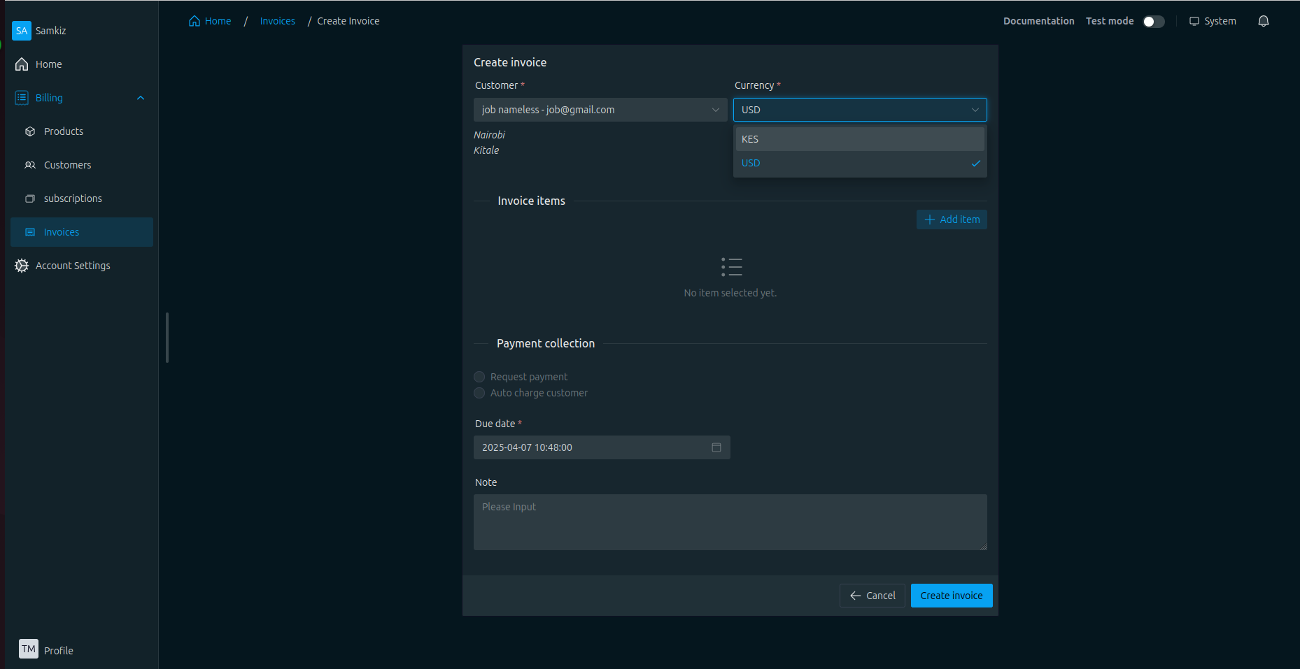 Begin by logging into your Spectabill dashboard or creating a free account. The dashboard organizes all billing tools—products, customers, subscriptions, invoices, and checkout—into an intuitive interface.